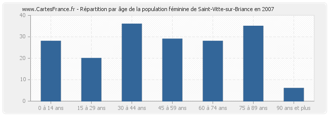 Répartition de la population féminine de Saint-Vitte-sur-Briance par âge en 2007 :