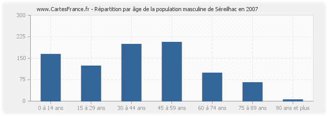 Répartition de la population masculine de Séreilhac par âge en 2007 :