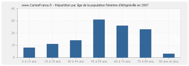 - Femmes de 45 à 59 ans habitant Attignéville : 31