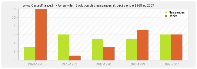 Avrainville : évolution des naissances et décès de 1968 à 2007
