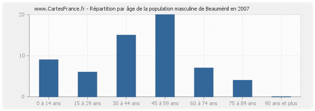 Répartition de la population masculine de Beauménil par âge en 2007 :