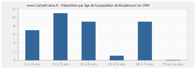 Répartition de la population de Boulaincourt par âge en 1999 :