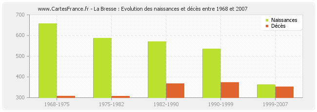 La Bresse : évolution des naissances et décès de 1968 à 2007