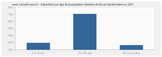 - Femmes de 20 à 64 ans habitant Étival-Clairefontaine : 708