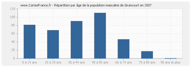 Répartition de la population masculine de Girancourt par âge en 2007 :