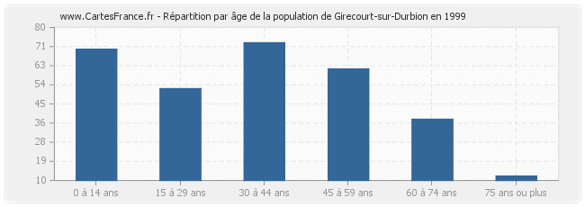- Population de Girecourt-sur-Durbion de 75 ans ou plus : 12 habitants
