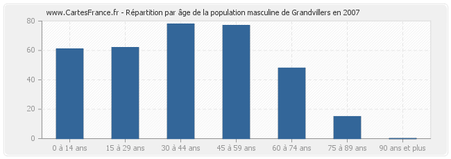 Répartition de la population masculine de Grandvillers par âge en 2007 :