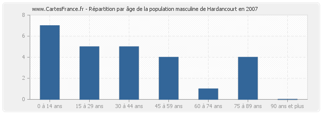 - Hommes de 0 à 14 ans habitant Hardancourt : 7