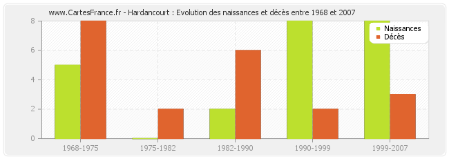 Hardancourt : évolution des naissances et décès de 1968 à 2007