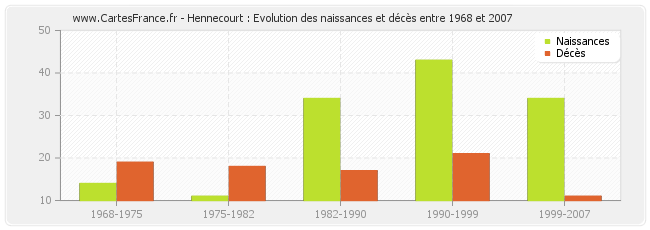 Hennecourt : évolution des naissances et décès de 1968 à 2007