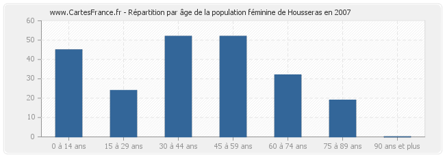 - Femmes de 45 à 59 ans habitant Housseras : 52