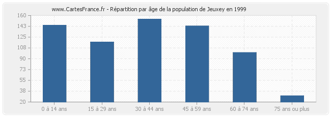 - Population de Jeuxey de 30 à 44 ans : 129 habitants