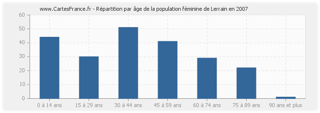 - Femmes de 30 à 44 ans habitant Lerrain : 51
