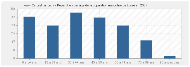 - Hommes de 0 à 14 ans habitant Lusse : 42