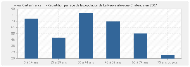 - Population de La Neuveville-sous-Châtenois de 30 à 44 ans : 84 habitants