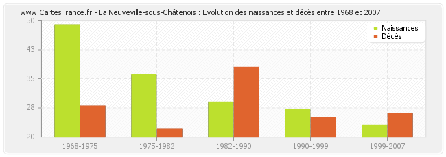 La Neuveville-sous-Châtenois : évolution des naissances et décès de 1968 à 2007