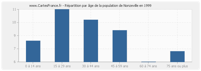 - Population de Nonzeville de 0 à 14 ans : 6 habitants