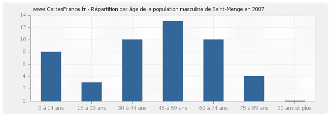 - Hommes de 45 à 59 ans habitant Saint-Menge : 13
