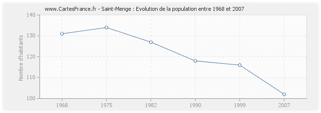 La population de Saint-Menge était de 102 habitants en 2007, 116 habitants en 1999, 118 habitants en 1990, 127 habitants en 1982, 134 habitants en 1975 et 131 habitants en 1968.