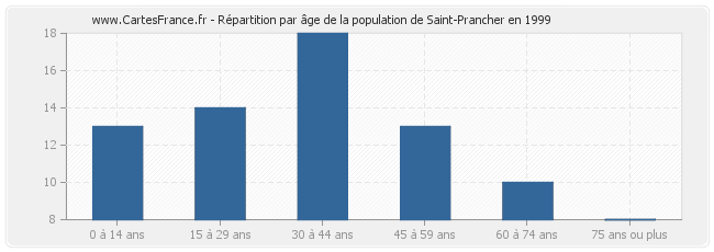 - Population de Saint-Prancher de 30 à 44 ans : 14 habitants