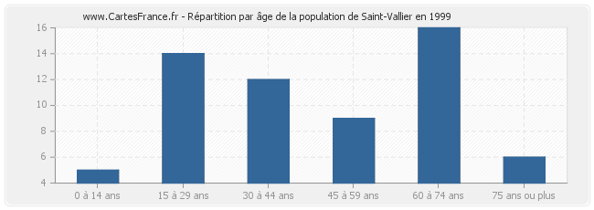 - Population de Saint-Vallier de 60 à 74 ans : 16 habitants