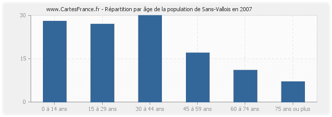- Population de Sans-Vallois de 30 à 44 ans : 30 habitants