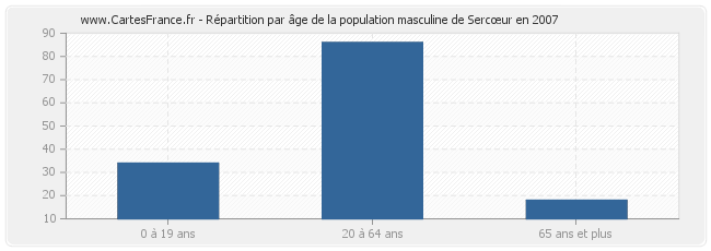 - Hommes de 20 à 64 ans habitant Sercœur : 86