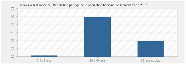 Répartition de la population féminine de Trémonzey par âge en 2007 :