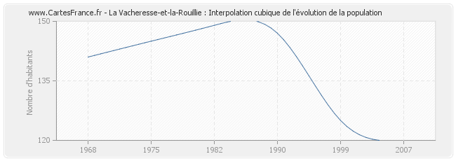 Cette courbe reprend l'historique de la population de La Vacheresse-et-la-Rouillie de 1968 à 2007 en interpolation cubique. Ceci permet d'obtenir plus précisément la population de la commune de La Vacheresse-et-la-Rouillie les années ou aucun recensement n'a été effectué.