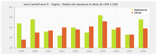 Vagney : évolution des naissances et décès de 1968 à 2007