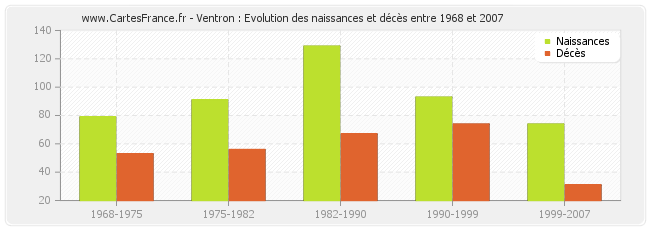 Ventron : évolution des naissances et décès de 1968 à 2007