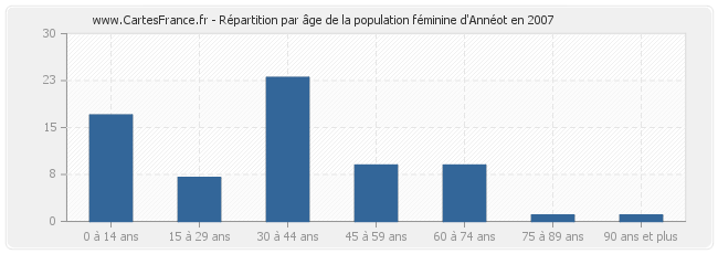 Répartition de la population féminine d'Annéot par âge en 2007 :