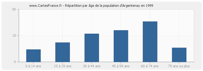 - Population d'Argentenay de 60 à 74 ans : 23 habitants