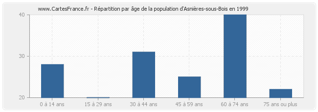 - Population d'Asnières-sous-Bois de 75 ans ou plus : 22 habitants