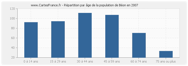 - Population de Béon de 30 à 44 ans : 111 habitants