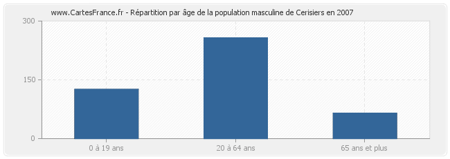 Répartition de la population masculine de Cerisiers par âge en 2007 :