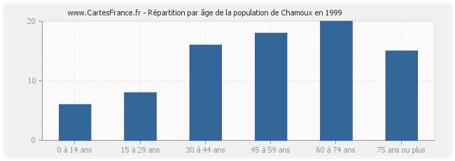 - Population de Chamoux de 60 à 74 ans : 20 habitants