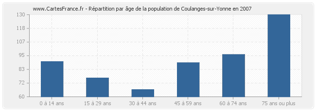 - Population de Coulanges-sur-Yonne de 75 ans ou plus : 130 habitants
