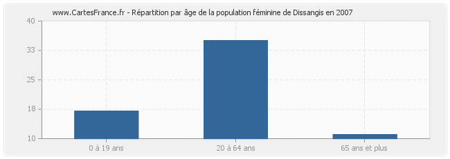 Répartition de la population féminine de Dissangis par âge en 2007 :