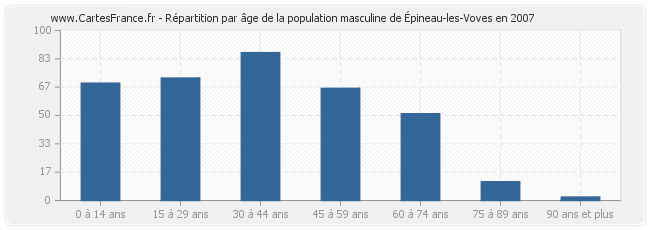 Répartition de la population masculine d'Épineau-les-Voves par âge en 2007 :