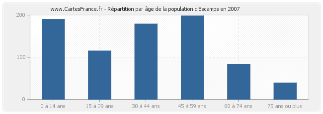 - Population d'Escamps de 45 à 59 ans : 198 habitants