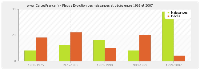 Fleys : évolution des naissances et décès de 1968 à 2007