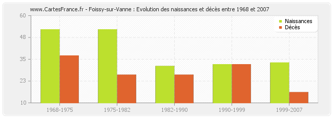 Foissy-sur-Vanne : évolution des naissances et décès de 1968 à 2007