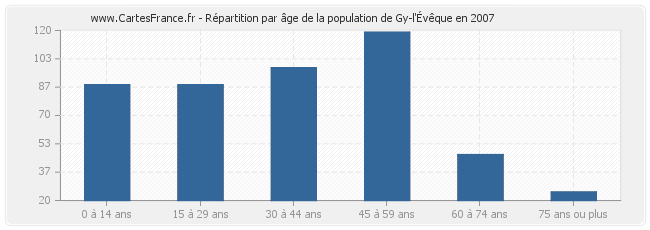 Répartition de la population de Gy-l'Évêque par âge en 2007 :