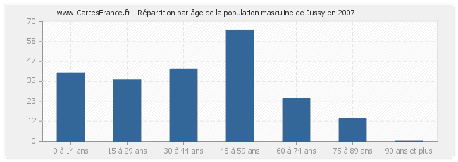 Répartition de la population masculine de Jussy par âge en 2007 :