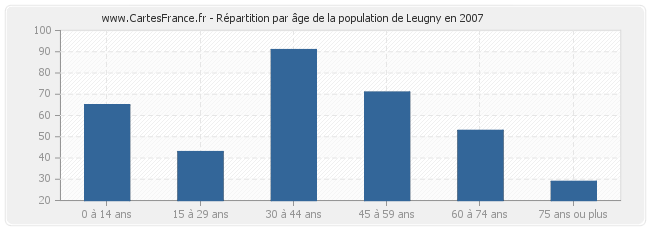 - Population de Leugny de 30 à 44 ans : 91 habitants