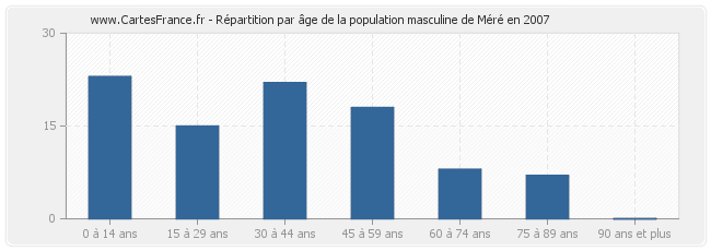 - Hommes de 0 à 14 ans habitant Méré : 23