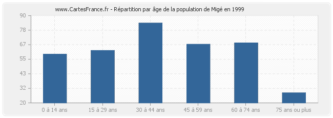 - Population de Migé de 30 à 44 ans : 84 habitants