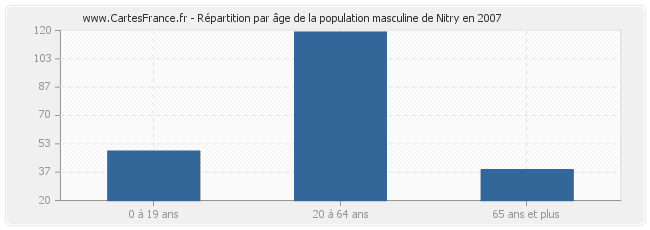 Répartition de la population masculine de Nitry par âge en 2007 :