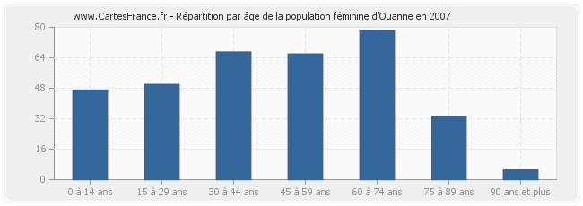 - Femmes de 60 à 74 ans habitant Ouanne : 78